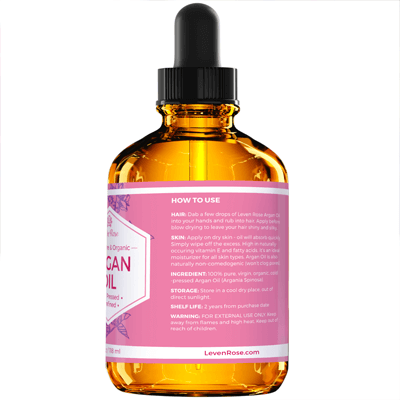 Leven Rose Argan Oil is made in Morocco, leaving all the important essential elements in the oil, with NO additives or fillers. A dark amber bottle with a glass stopper extends the shelf life since natural oils are light-sensitive and should be stored away from light. Oils that are not packaged in dark bottles may lose potency and become less effective.