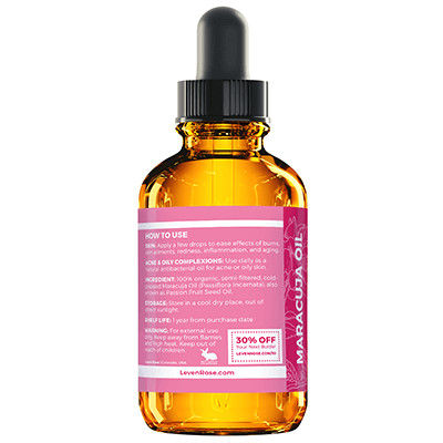 Leven Rose Maracuja Passion Fruit Seed Oil is clean - you never have to worry about parabens, fillers, additives, chemicals, GMOs or any other terrible stuff.