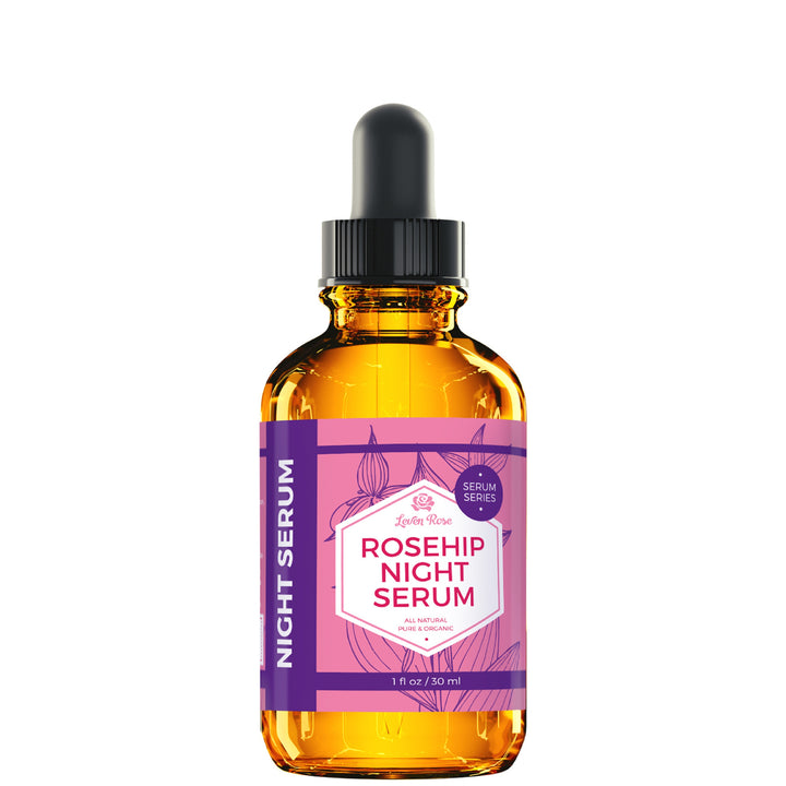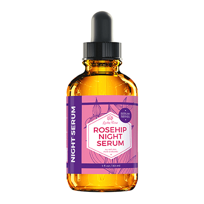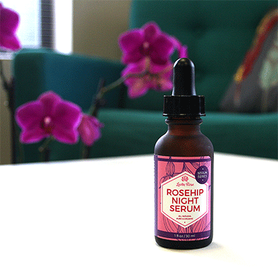 Our Rosehip Night Serum contains these ingredients for Anti-Aging, Wrinkles, and Dark Spots: Organic Rosehip Seed Oil, Jojoba Oil, Pomegranate Seed Oil, Carrot Seed Oil, Red Raspberry Seed Oil, Maracuja Oil (Passionfruit Seed Oil), Tomato Seed Oil, Watercress Seed Oil, Calendula Oil + Lavender Essential Oil.