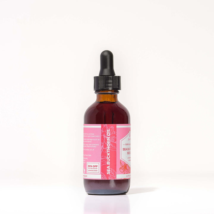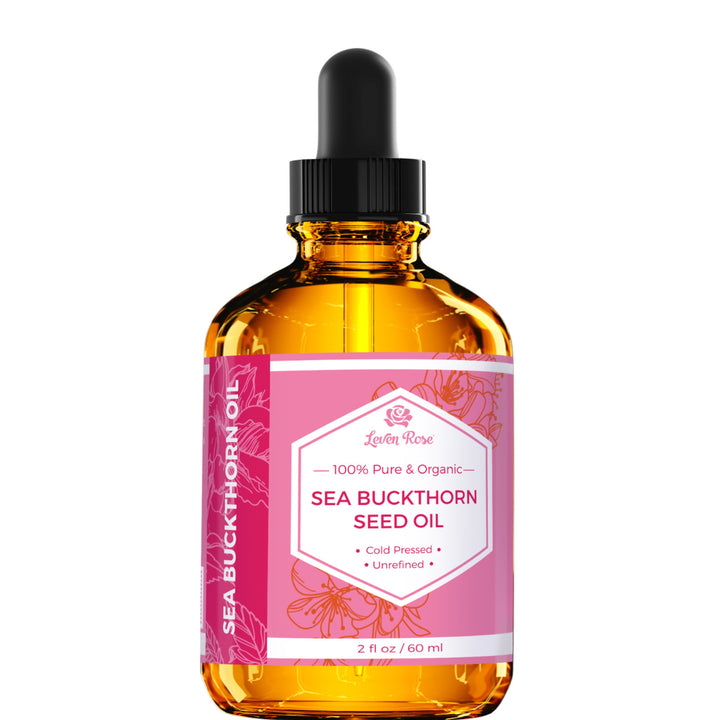 Leven Rose Sea Buckthorn Oil is unrefined, cold-pressed with no added fragrances, parabens, or alcohol. It is cruelty-free, vegan-friendly, and kosher. The oil is rich in essential fatty acids, Vitamin A, and Vitamin C. It can be used to hydrate the face, improve complexion, and reduce red spots. When applied as a base layer with natural sunscreen, it provides added hydration and some UV protection.